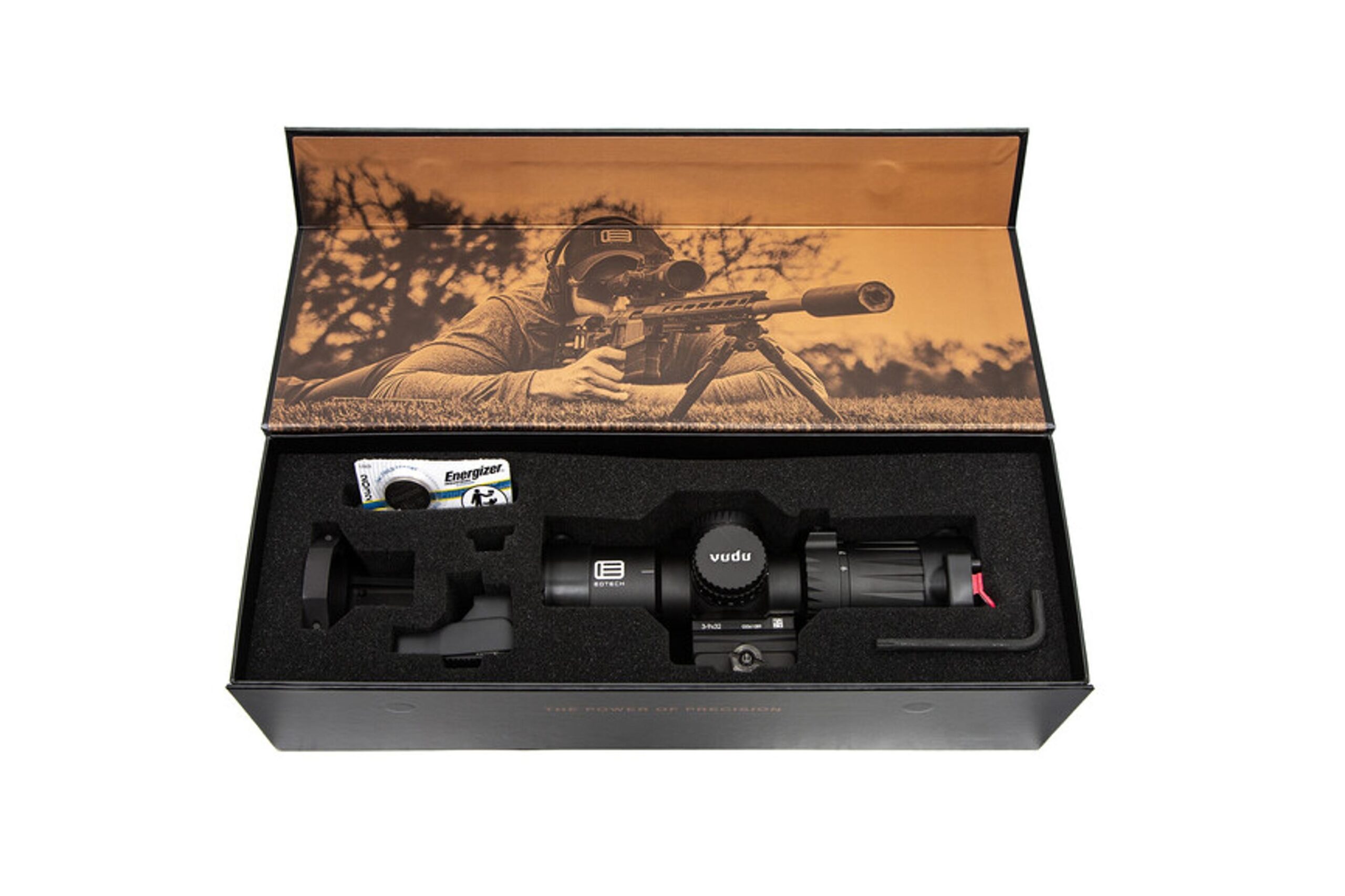 Приціл Vudu 39×32 виробляється в Японії, де йому забезпечують виняткову якість оптичних компонентів, а EFLX виготовляється у США, що підтверджує високий стандарт бренду EOTech. Обидва приціли демонструють бездоганну роботу, витримують навантаження польових умов та гарантують стабільну точність незалежно від обставин.