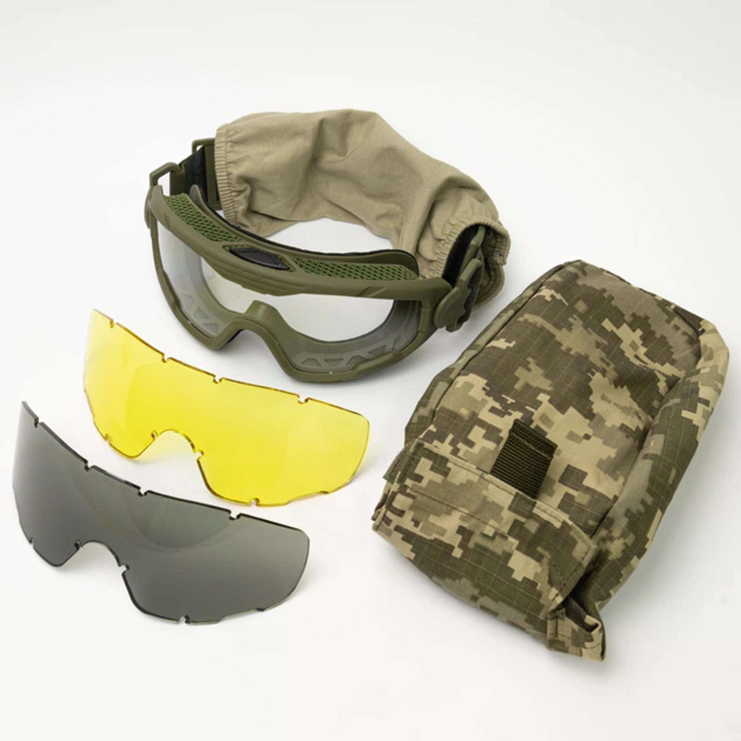 - У комплекті три змінні лінзи: прозора, жовта та темна — для різних умов освітлення.